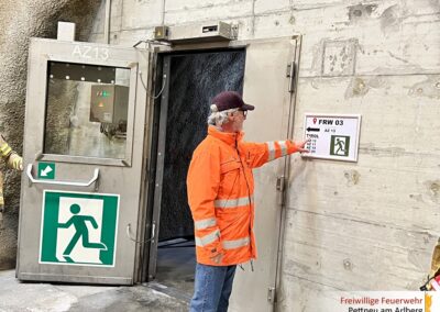 Besichtigt wurden unter anderem die Aufgänge in den Zuluftkanal bis hin zum Sammelraum sowie der Einsatzraum beim Tunnelportal in St. Jakob. Besonders im Fokus stand das bestehende Rettungskonzept: Im Ereignisfall sollen sich die im Tunnel befindlichen Personen über die Aufgänge in den Zuluftkanal und weiter in den Sammelraum begeben, um dort einen sicheren Bereich zu erreichen und auf die Einsatzkräfte zu warten.