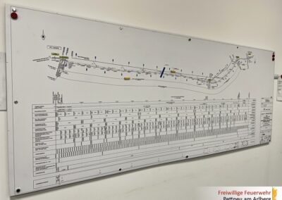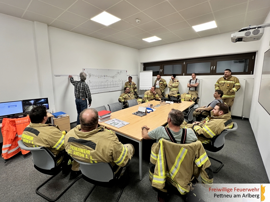 Ein weiterer wichtiger Punkt war die Besichtigung des Einsatzraumes beim Tunnelportal. Dieser dient im Ernstfall als zentrale Drehscheibe für die Einsatzleitung, in der alle beteiligten Blaulichtorganisationen und Behörden zusammenarbeiten, um den Einsatz zu koordinieren und abzuwickeln.