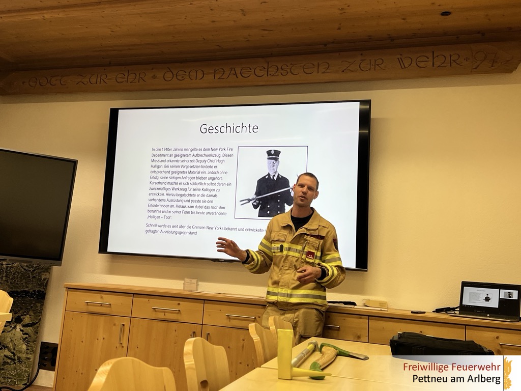 Abschließend wurde das neue Einsatzgerät, das Halligan Tool, vorgestellt. Die Kameraden erhielten eine Einweisung in die vielseitigen Einsatzmöglichkeiten dieses Werkzeugs, insbesondere im Bereich der Türöffnung sowie als Hebel- und Brechwerkzeug.