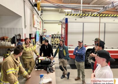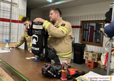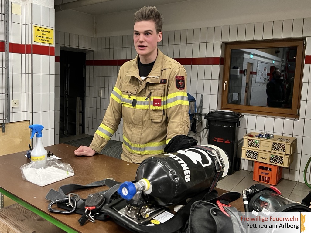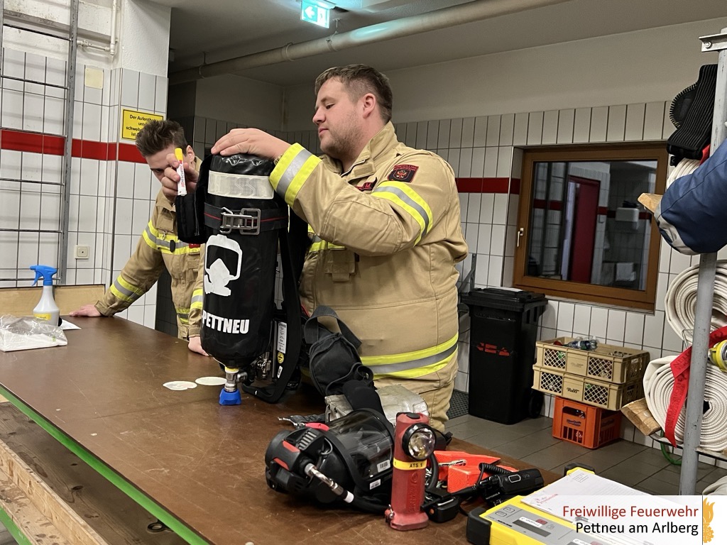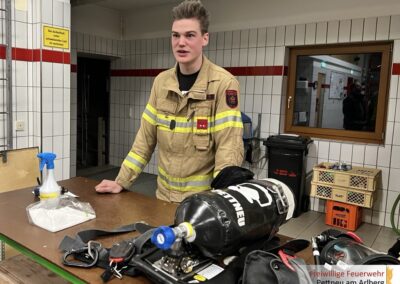 Dabei wurden der Aufbau und die Funktion des Geräts und der Masken (+Funkfunktion) ausführlich erklärt. Ebenso wurden die richtige Bedienung sowie besonders beachtenswerte Punkte beim Auf- und Abrüsten besprochen. Ein weiterer Schwerpunkt lag auf der Atemschutzüberwachung (ATS-Überwachung). Hier wurden die Aufgaben der Überwachungsperson, die Dokumentation sowie sicherheitsrelevante Kontrollmaßnahmen erläutert. Ziel war es, einen sicheren und strukturierten Ablauf im Einsatz sicherzustellen.